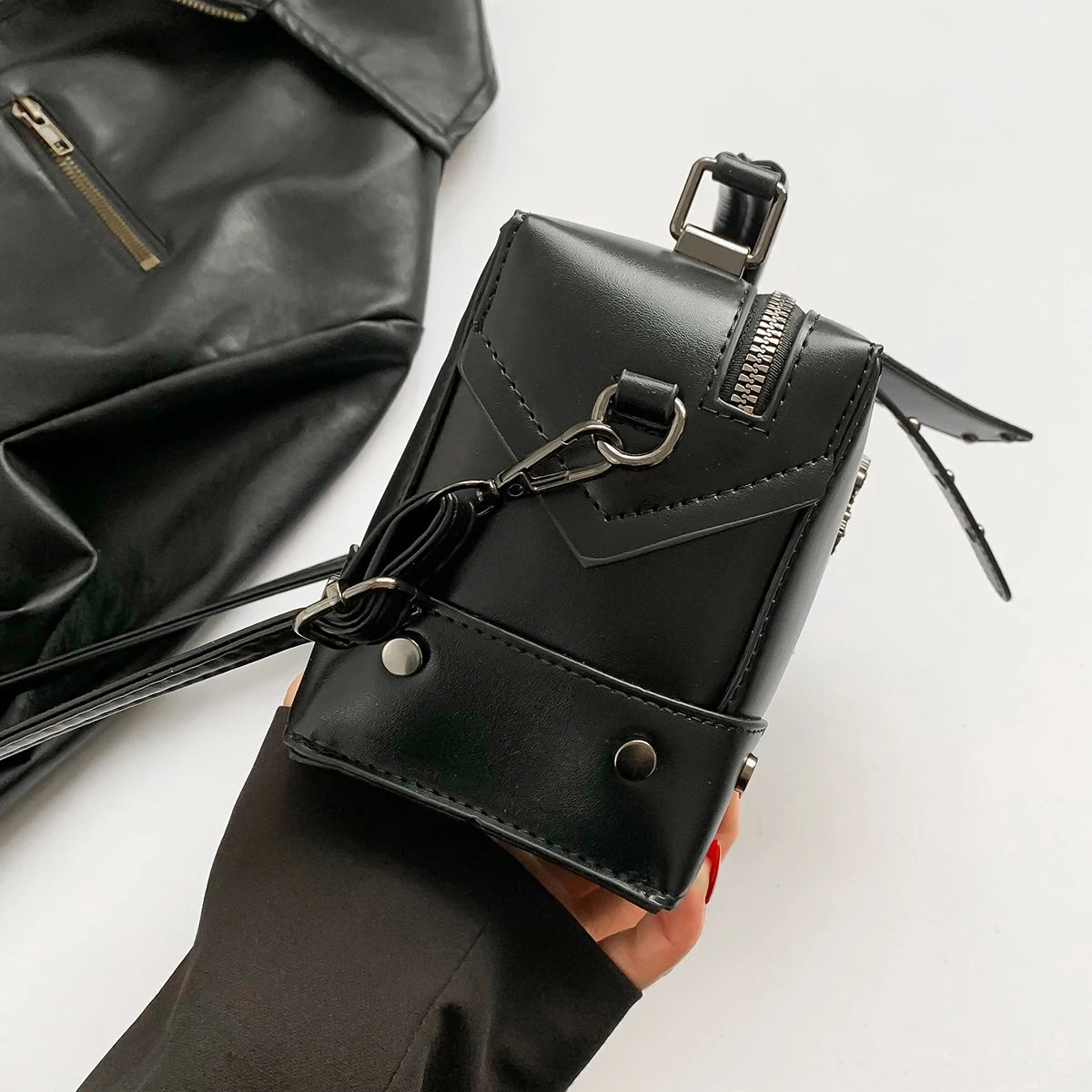 ✧ A sealed vessel forged for what must never be forgotten — structured leather, cold metal, and the weight of silence carried close to the body.