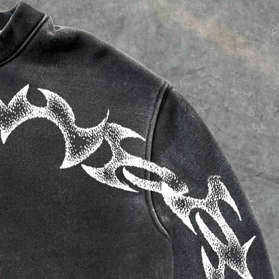 At Asthetic Nine, every piece is crafted with premium fabrics, carefully chosen for durability and comfort. We use detailed finishes, precise cuts, and advanced treatment processes to preserve quality and reinforce the ritualistic aesthetic of the brand. Each item is designed to combine resilience, style, and authenticity, translating the cultist identity into wearable form.
