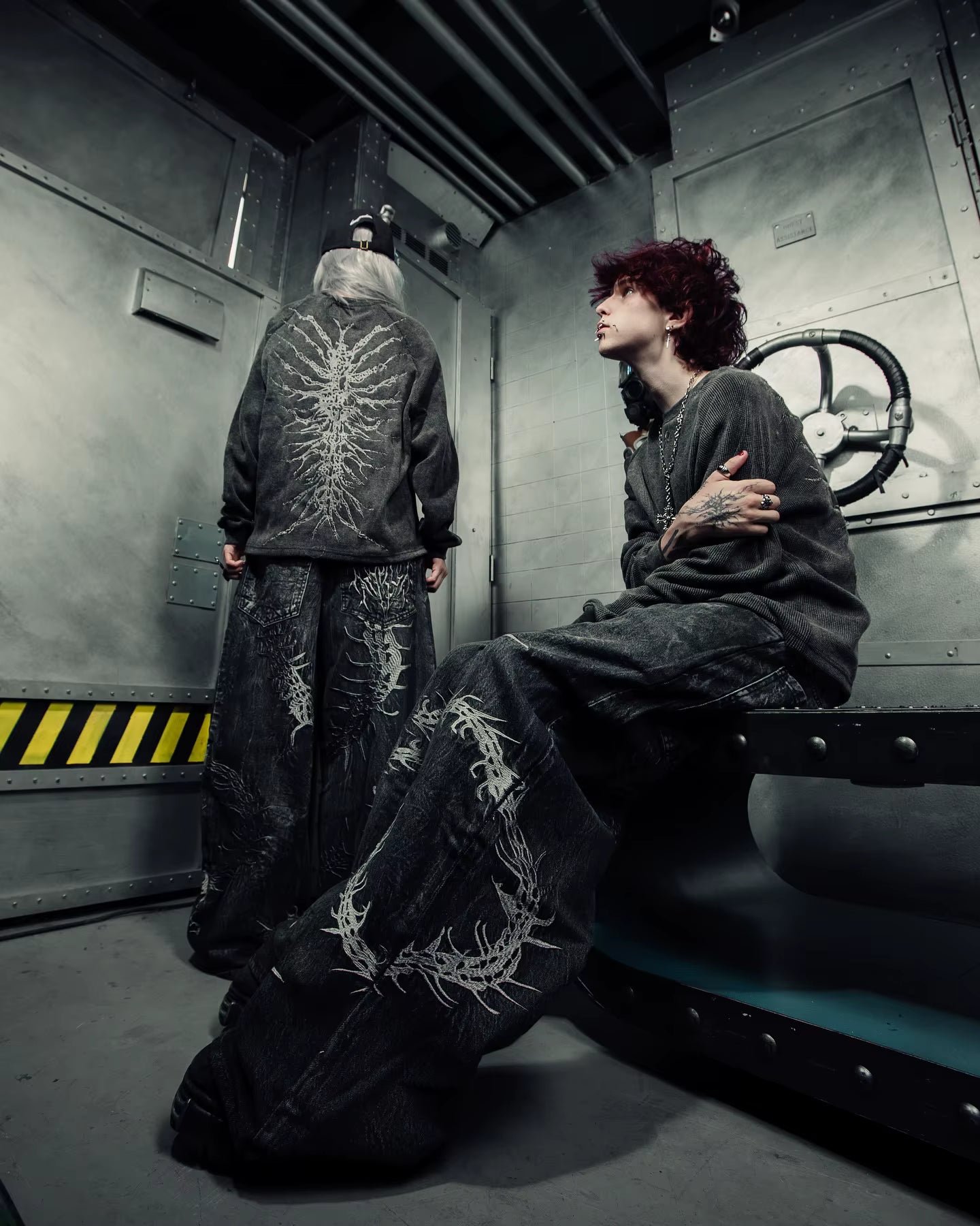 At Asthetic Nine, every piece is crafted with premium fabrics, carefully chosen for durability and comfort. We use detailed finishes, precise cuts, and advanced treatment processes to preserve quality and reinforce the ritualistic aesthetic of the brand. Each item is designed to combine resilience, style, and authenticity, translating the cultist identity into wearable form.